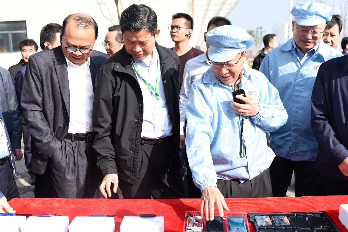 在深科技桂林產(chǎn)品展區(qū),陳朱江向考察團(tuán)簡要介紹了深科技生產(chǎn)制造的硬盤、磁頭、智能電表等各種產(chǎn)品,并詳細(xì)講解智能手機(jī)產(chǎn)品的生產(chǎn)工藝流程。隨后,考察團(tuán)到一期生產(chǎn)車間參觀,實(shí)地了解SMT生產(chǎn)線的工藝流程、產(chǎn)品生產(chǎn)運(yùn)輸裝配流程及人員管理調(diào)度等情況。考察團(tuán)對深科技的產(chǎn)品多樣性、先進(jìn)技術(shù)及桂林公司發(fā)展前景表示贊許。