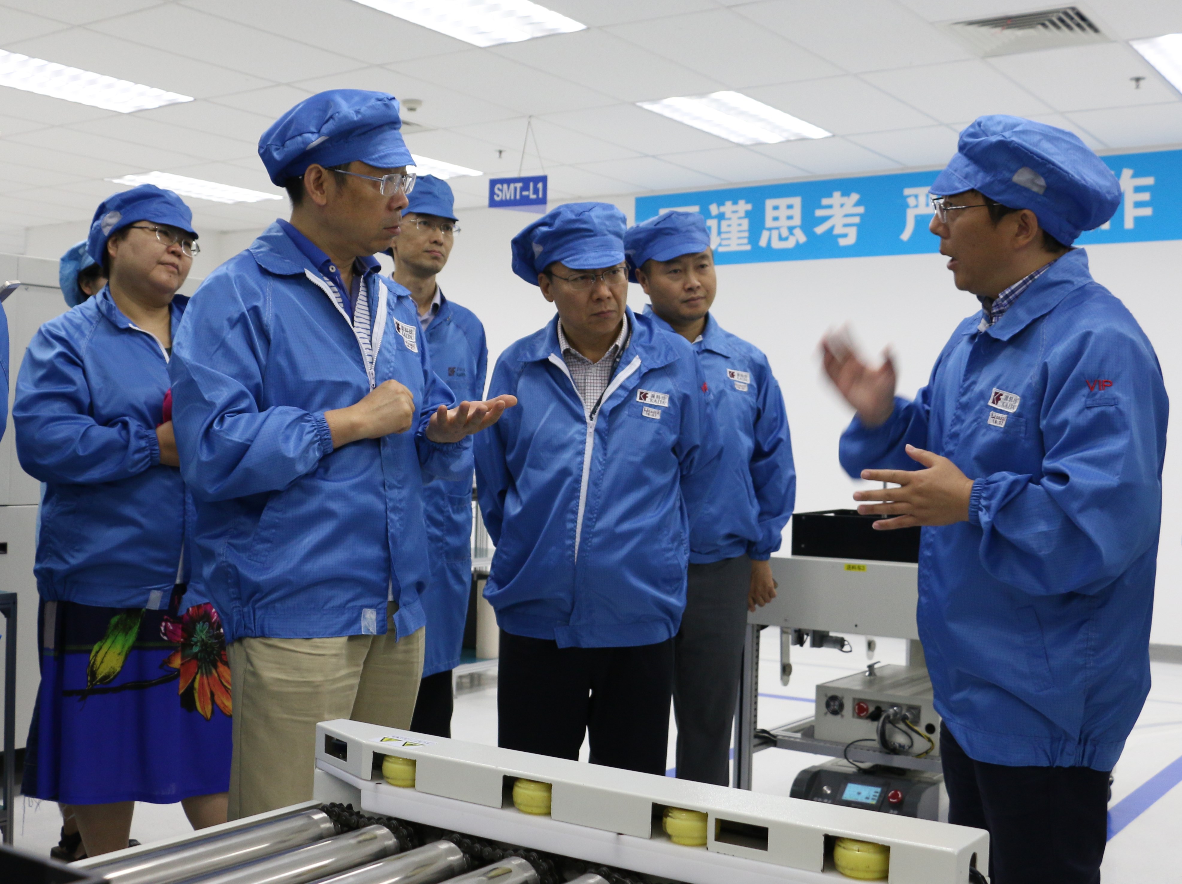 朱立鋒一行首先參觀了深科技醫(yī)療產(chǎn)品事業(yè)部生產(chǎn)車間,了解健康醫(yī)療產(chǎn)品生產(chǎn)過程中的智能制造技術(shù)。車間負(fù)責(zé)人重點介紹了生產(chǎn)線智能倉儲系統(tǒng)、表面貼裝技術(shù)(SMT)的生產(chǎn)工序及智能生產(chǎn)設(shè)備。朱立鋒對深科技在生產(chǎn)過程中全面推廣應(yīng)用智能制造技術(shù)的成果表示肯定。